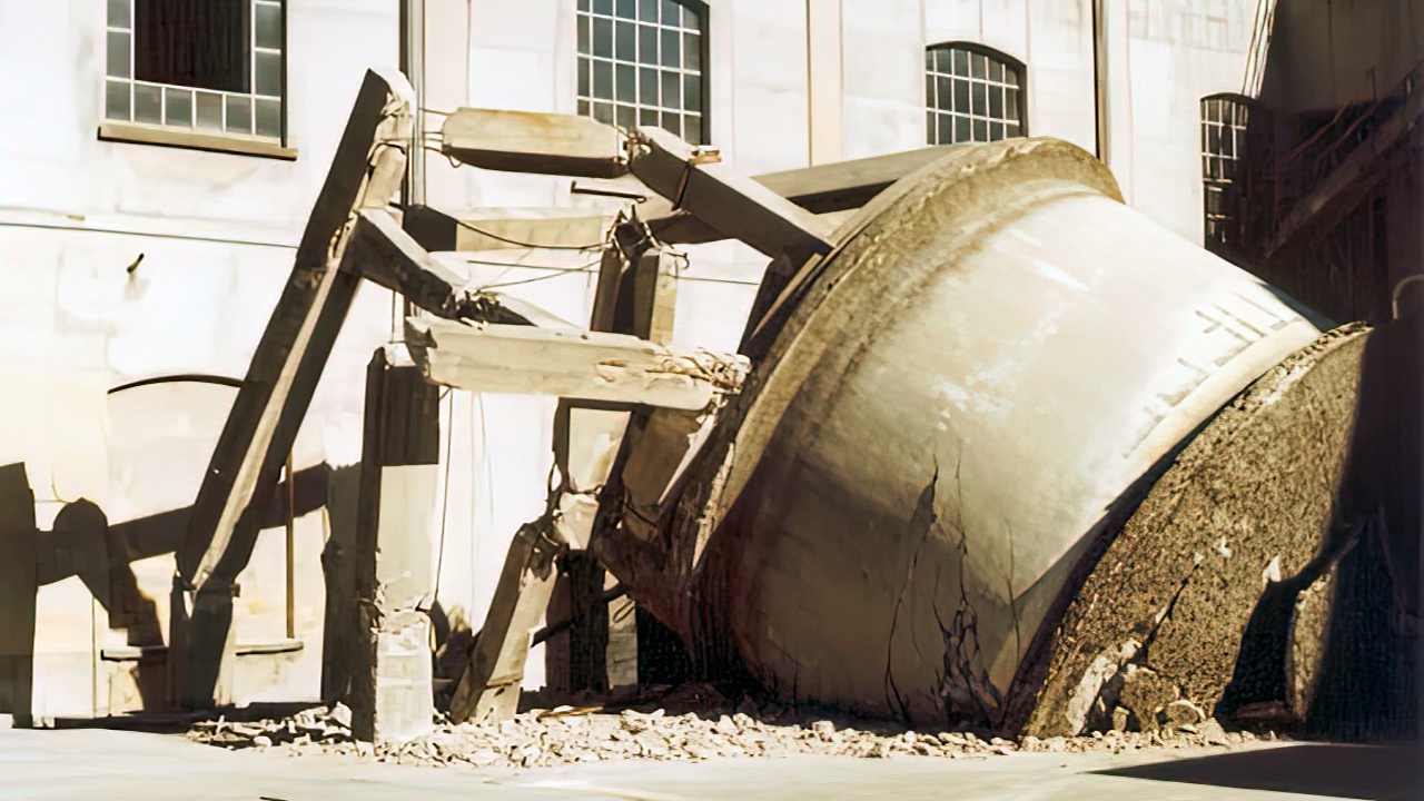Demolizione Industriale realizzata a Cappella Cantone (CR) con CAT 323 munito di Pinza Primaria senza particolari difficoltà non sempre data per scontata in questo tipo di demolizione