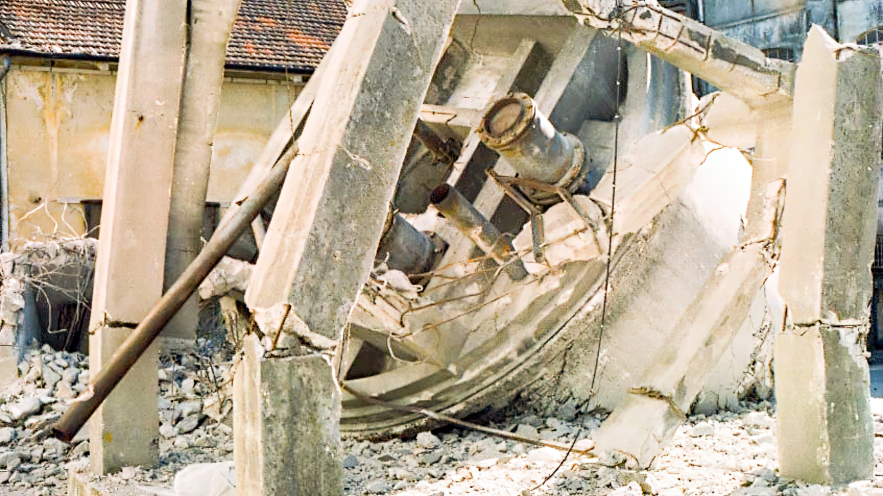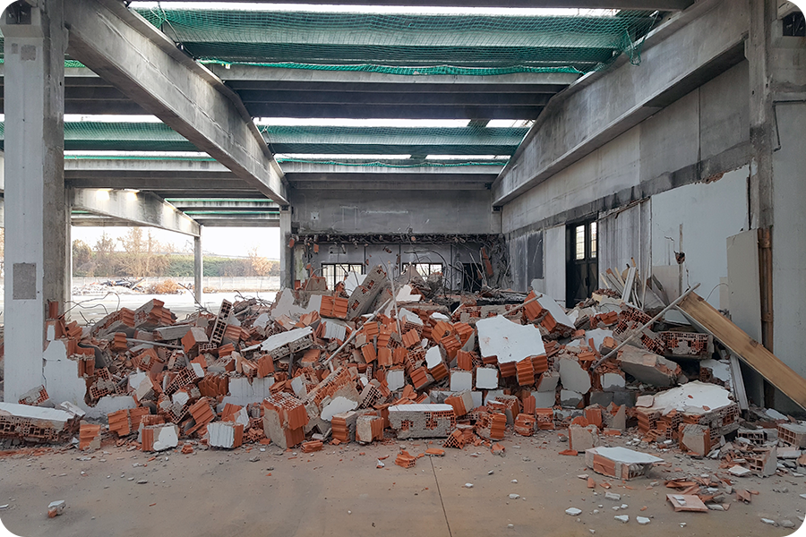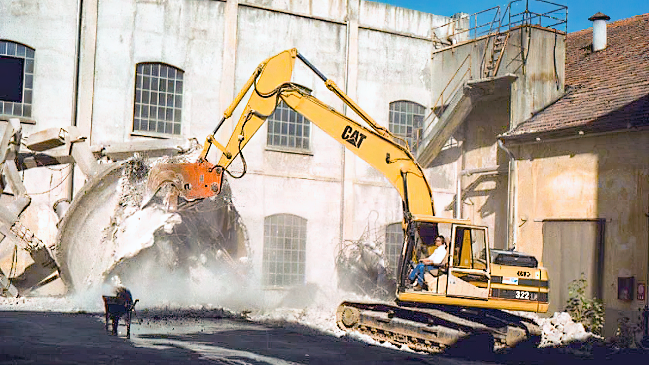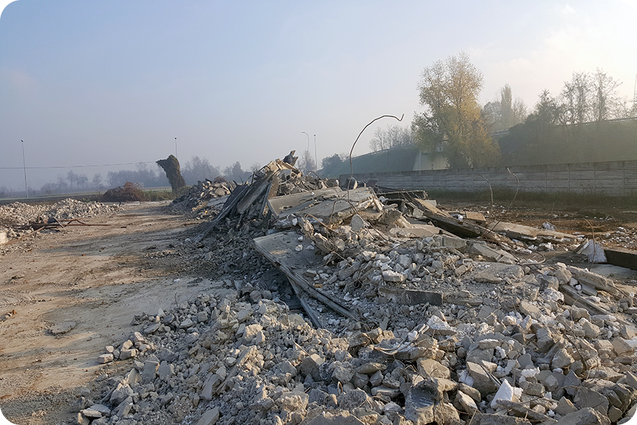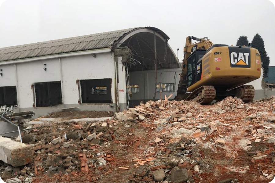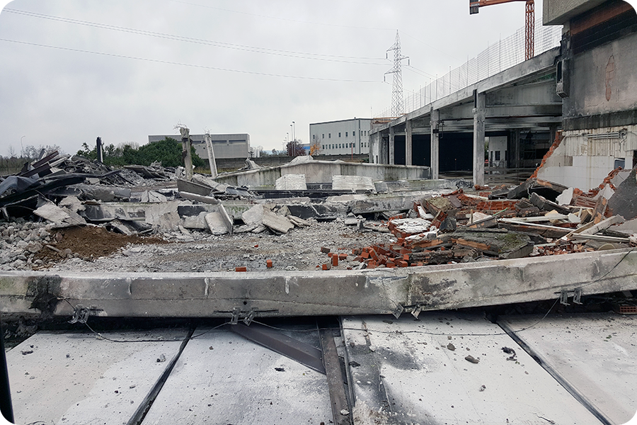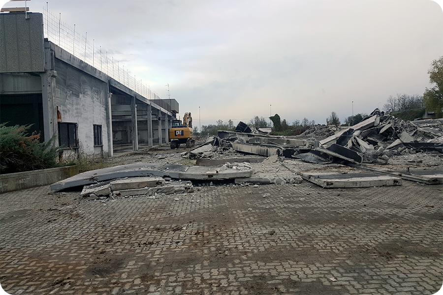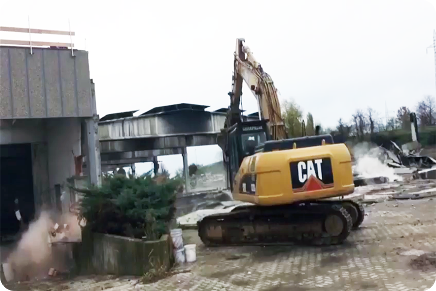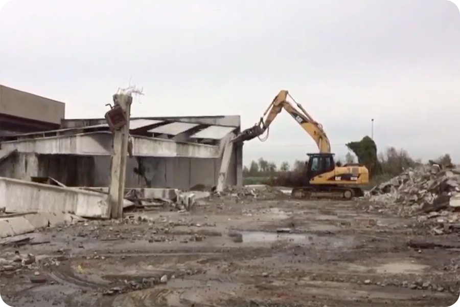 Demolizione Industriale realizzata a Concorezzo (MI) con CAT 320 munito di frantumatore senza particolari difficoltà non sempre data per scontata in questo tipo di demolizioni