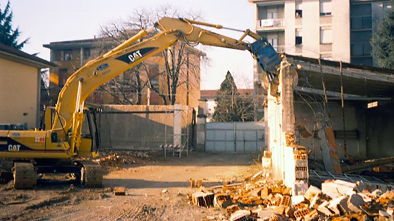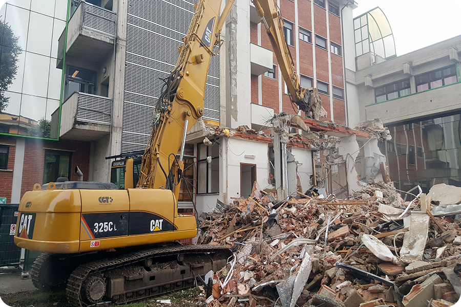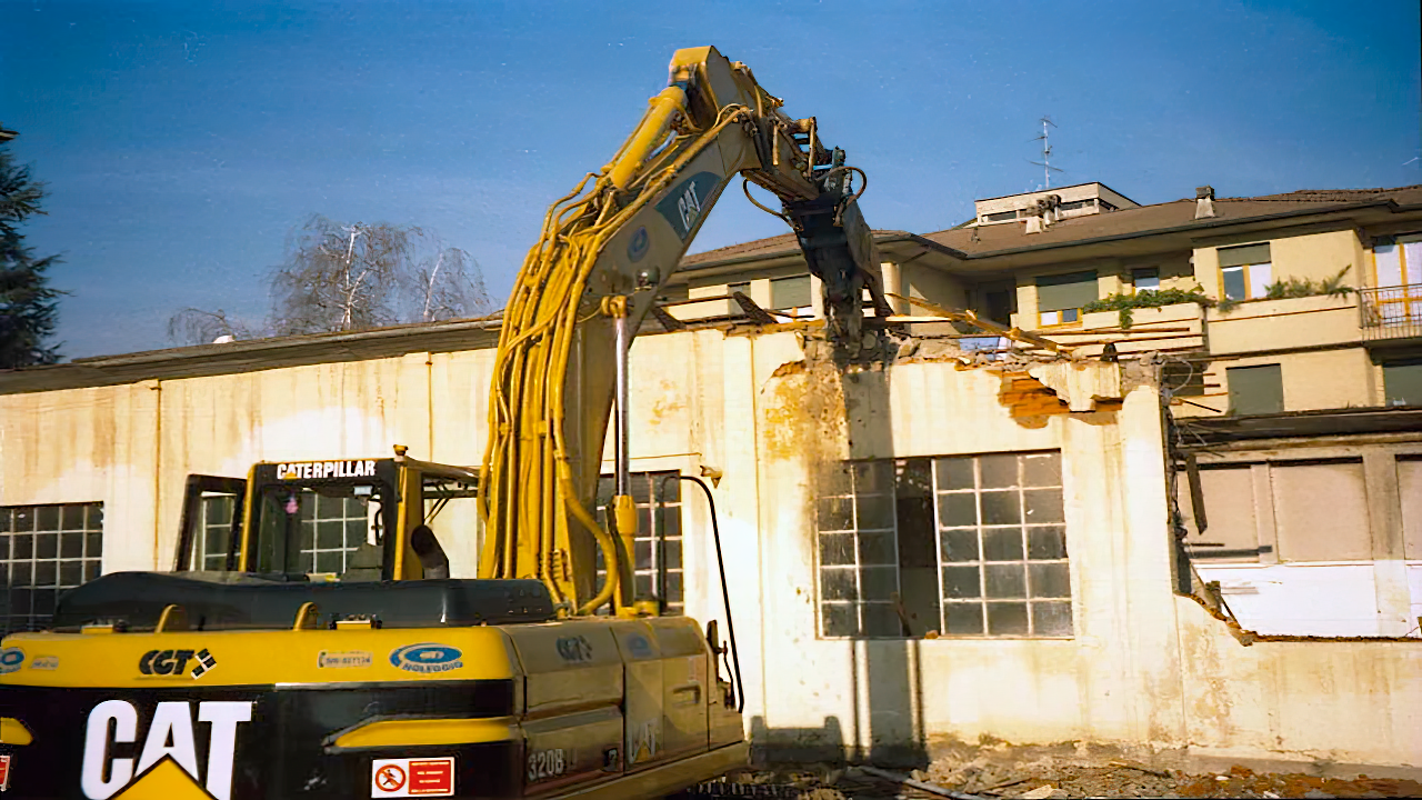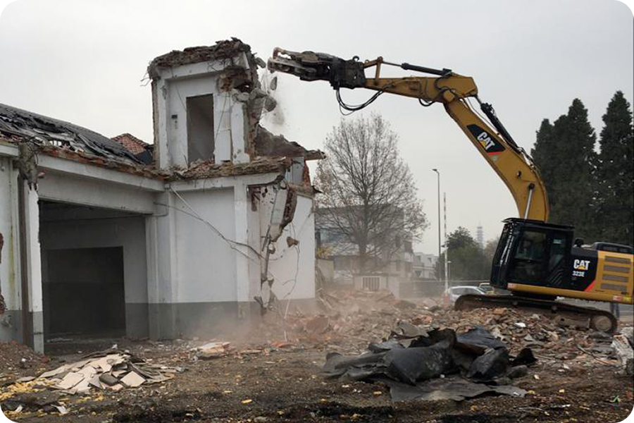 Demolizione Civile realizzata a Cernusco S.N. (MI) con CAT 323 munito di frantumatore senza particolari difficoltà non sempre data per scontata in questo tipo di demolizioni