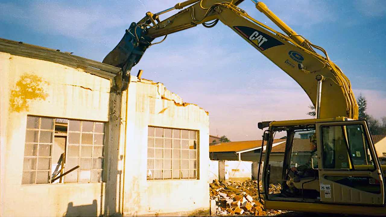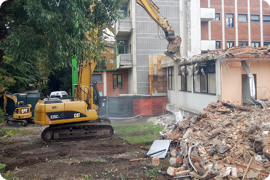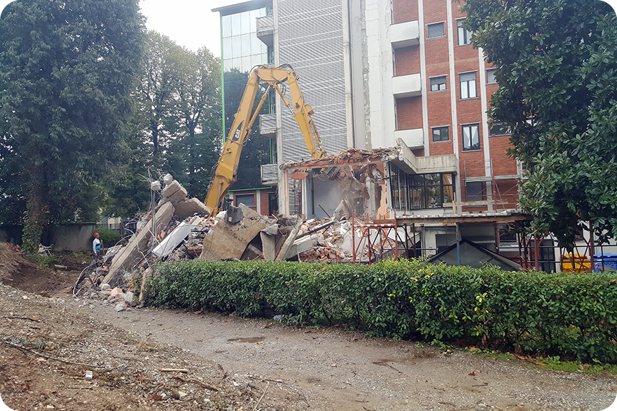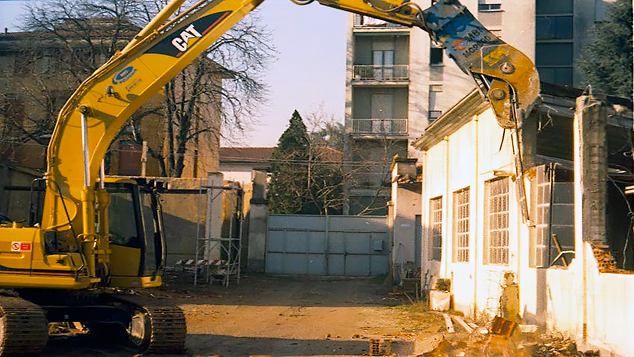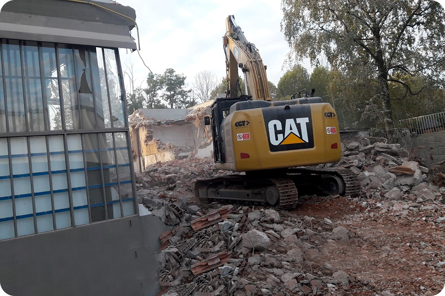 Demolizione Civile realizzata a Cernusco S.N. (MI) con CAT 323 munito di frantumatore senza particolari difficoltà non sempre data per scontata in questo tipo di demolizioni