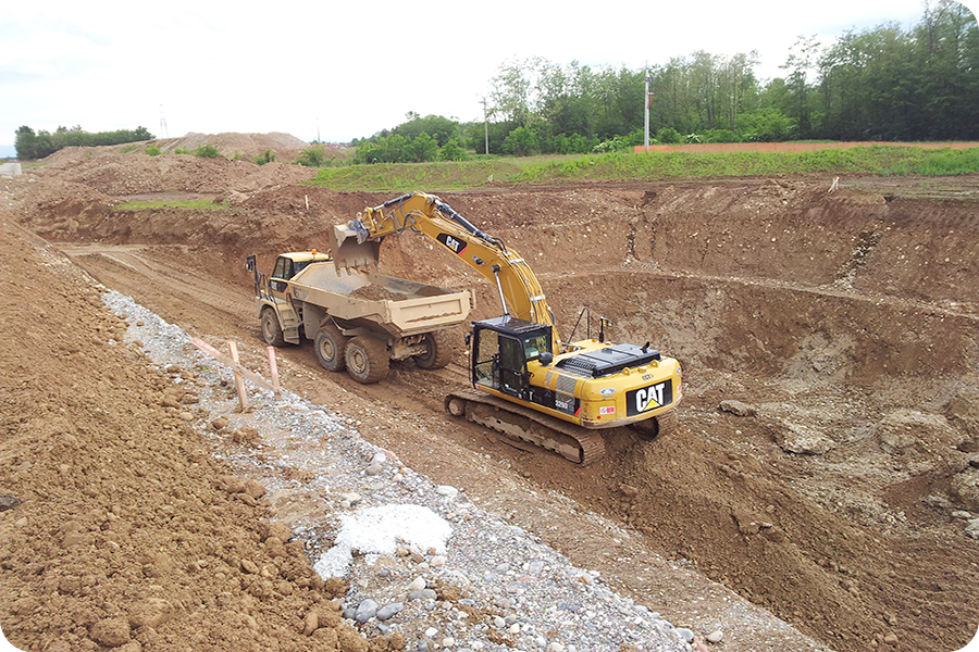 Cantiere di Mozzate (CO) con CAT 329 D Movimento Terra e rifinitura scarpate realizzato sul tracciato della Pedemontana Lombarda