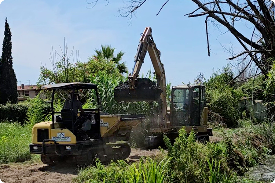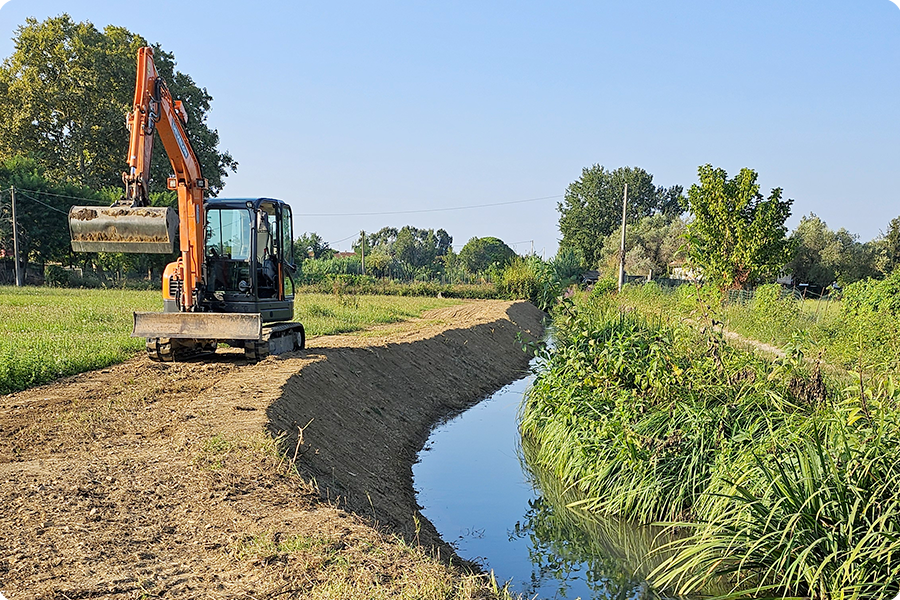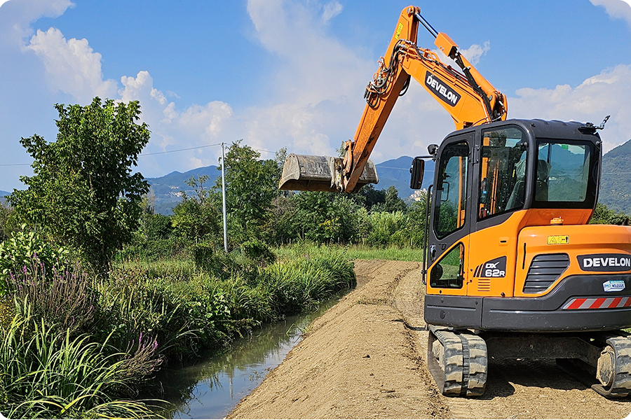 Ripristino Argini e Pulizia Alveo Canali realizzato a Marina di Carrara con CAT 306 e Develon DX62R